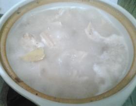 开锅加藉块,煮一个小时左右。待吃时放盐,依各人口味加胡椒粉,香菜等