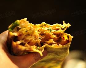 - 16. 包起来从中间铲开即可。(我的鏊子没有外面卖煎饼的大,所以简单包了下)