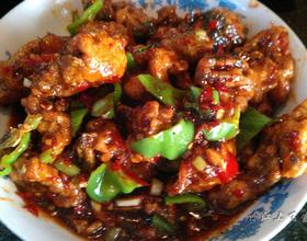 用炒锅把油烧到7分热,放入葱姜蒜、花椒面炒香,放入醋、糖、盐、湿淀粉少许、红辣椒酱、炸好的鱼块和青椒翻炒装盘。
