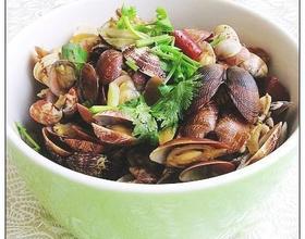 盖上盖子略闷,不时翻炒一下,直到蛤全部开口,即熟。