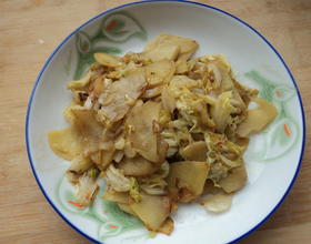 中火不停翻炒。。。快熟了时候放上醋。。。白菜和土豆放醋都好吃。。。