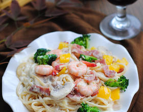 ◎意面中的蔬菜可根据个人喜好随意添加。◎煮意大利面时,水要多一点,这样煮的面条不容易粘锅。煮时加少许盐可以使面条防粘连,并且可以使面条的口感更筋道。◎奶油白酱汁可以一次多做点,冷藏保存,随吃随取,4天内食用完最好。