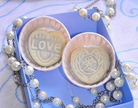 - 13. 放入月饼模具中(放入少许糕粉防粘)