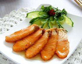 平底锅倒油烧至温热,放入腌好的三文鱼,用中火,煎至表面变色即可,时间不要太长免得破坏鱼肉的营养。
