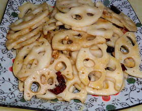 等莲藕快熟时倒入提前调好的汁快速翻炒即可。