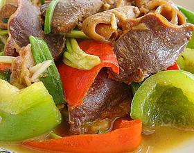 将鸭杂切片,切好后用料酒、盐腌制20分钟。