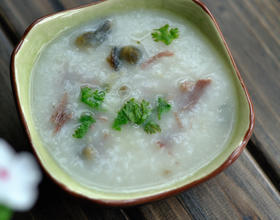 1、猪肉丁经过熬制变得酥烂,喝粥的时候,用汤匙压几下就能成肉丝。2、大米淘洗后用用腌渍一段时间,这样处理的米熬粥时候容易软烂且香甜。