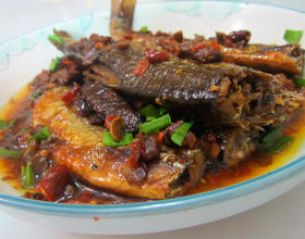 锅里烧油放进腊鱼翻炒几下,俺家的说法将鱼过一下热油,蒸的鱼不会有腥味。
