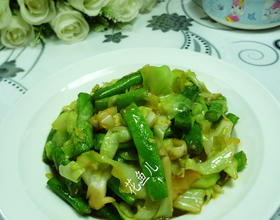 接着,合入切开的牛心菜翻炒翻炒至熟。