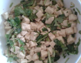 先把豆腐用温水煮下,放在容器里,放点盐,醋,生抽,腌一会,