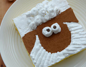 - 15. 揭下油纸,补一下奶油,挤上头发和眼睛,眼睛上放巧克力即可