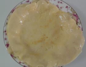 在平底锅中放入少量色拉油,放入搅好的面浆,摊平,成型时翻面;
