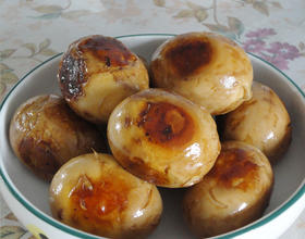 锅里加水、卤肉汁适量,大料、花椒各一小把,盐适量。(尝尝汤的咸淡再加盐。),如果汤色不够红润,加些酱油调色。煮半小时,关火。蛋在五香汁里泡到入味。