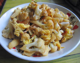 放入菜花翻炒