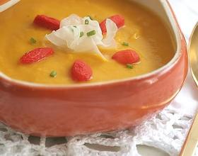 - 2. 把蒸好的南瓜放入搅拌机中搅打成南瓜泥