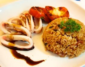 鱿鱼以百里香、牛至、孜然粉、辣椒粉、海盐调味烤制。