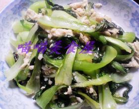11、煸炒至油菜略变色,加入精盐和鸡精即可关火。