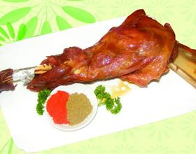 将卤好的羊腿去骨,改刀,羊肉改块。肉块配淀粉过油,炸至外酥里嫩。
