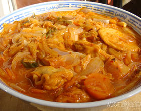 步骤8-12中的食材不能用其他东西代替,否则味道就不对:1、韩式泡菜、韩国辣酱比较容易买到;2、韩式鱼饼不太容易找,刚在TB上搜了一下,竟然有卖的;3、韩式鱼露不同于泰式鱼露,它里面是看得到一条一条的小鱼的;4、虾酱也是如此,能看到一只一只的小虾米;5、鱼露和虾酱都能起到增鲜的作用,放入汤中加热后会溶化。