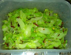 把滤掉水分的包菜放入带盖子的保鲜盒中 放入蒜末