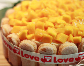 木有马斯卡彭芝士,木有咖啡酒,唯一只拥有传统提拉米苏三种原料中的手指饼干另外要照顾到恩泽宝贝,连表面撒得可可粉都用芒果粒代替了SO,今天这个提拉米苏,好山寨哦…… 哈哈!