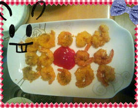 最后下锅炸制金黄便可。挤上番茄酱或者千岛酱~~回味无穷~~~~