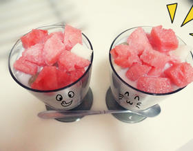 杯子装满水果,倒入冰椰汁,喜欢吃甜可加点炼乳