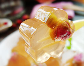 等煮好的果冻液凉至温热,加蜂蜜调节味道