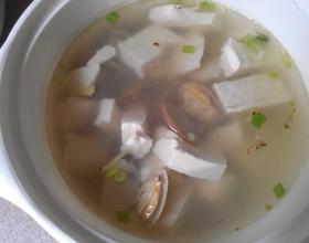 下花蛤翻炒半分钟左右,加水;(水量根据你要喝的分量放)