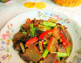 放进香菜炒匀。调入味精提味,炒匀即可出锅。