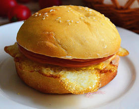 - 1. 在面包片上涂上色拉酱,夹入鸡蛋和火腿即可。