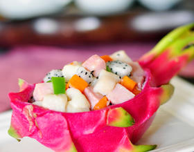 水果入菜,一定要等所有调味都完成后,最后加水果。