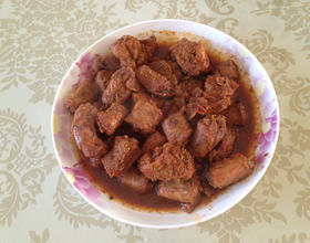 炒制过程中,放入豆瓣酱、豆豉、酱豆腐(主要为了上色)。放入各种调料,炒到上色。加水炖十五分钟(想要烂一点可放进高压锅焖一下)最后大火收汁。