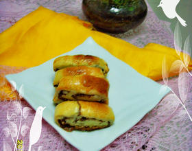 - 9. .切成大小相等的小块。刷蛋液。放烤箱中层。170度烤20分钟。