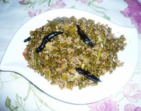 放入豆角翻炒,加些热水闷一会。加些豆瓣酱