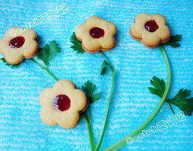 - 15. 把上面两种花片叠在一起,中间注入草莓酱即可