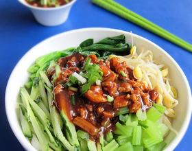食材:五花肉 炸酱 黄瓜 植物油 盐 姜 味极鲜 鸡精 香葱 手擀面 胡椒粉 料酒 黄豆芽 芹菜 小白菜