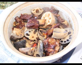 - 9. 炖上30分钟左右,将藕块放入,盖上锅盖,继续炖着!