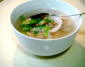 特点:色泽晶莹、汤水清亮、水晶润滑、味道鲜美。温馨提示:1、米浆是用大米加水搅打成浆的,和肠粉的米浆做法相同。2、肉馅一定用瘦肉馅为好,制作时,要先放肉馅再放米浆和虾肉。3、家中如没有高汤,可用超市购买的清汤块即可