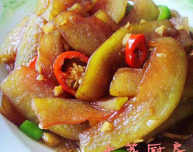 - 3. 将瓜皮切成薄片,用一小勺盐拌匀,腌制30分钟。