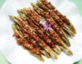 - 12. 锅洗干净,倒入少量的油,放入四季豆煎至