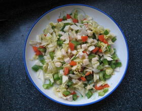 - 6. 圆白菜取中间的嫩心数片切丁。