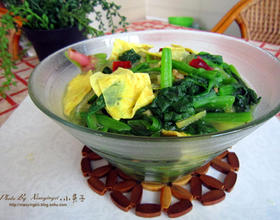 临出锅时放上切好的鸡蛋块,鸡精调味装盘。
