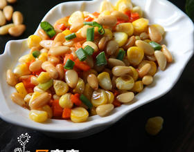 玉米剥皮用微波炉打2分钟,然后剥下玉米粒;胡萝卜去皮洗净切小粒;大葱切碎;