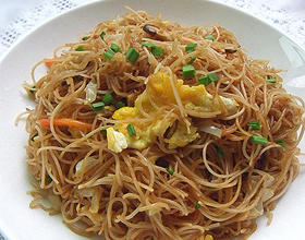 - 10. 最后加入炒好的蛋块,炒匀,出锅。(可先夹点炒好的面尝尝,有点硬的话可再倒入少许的清水,盖上锅盖焖会)