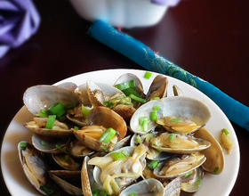 大火翻炒至蛤蜊全部开口,撒入葱花。