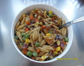 - 1. 胡萝卜,洋葱,香肠,蒜,切丁,豌豆煮熟,玉米粒本来就是熟的,面是包饺子剩的,没有的话现和要和硬点,等会剪面鱼好剪。
