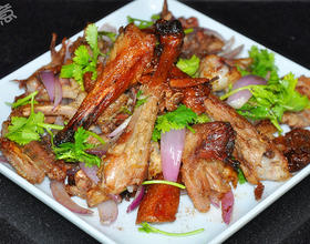起炒锅,加入少许食用油,下烤鸭架煸炒至微微发黄;