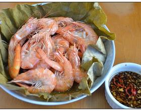 - 6. 烫好的荷叶展开,焯好的虾放入荷叶中,包起来
