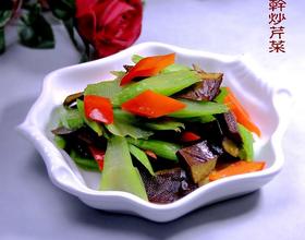 小菜特点;色泽艳丽、淡淡椒香、芹菜爽脆、香干味美、营养健康、简单快捷。温馨提示;1、芹菜要事先焯水迅速过凉,这样炒出的芹菜色泽美观口感好。2、制作这道菜不需要其它调料,只用盐和味精或鸡精等就可以。大炒勺的这道简单健康的家常菜“香干炒芹菜”就做好了,供朋友们参考!